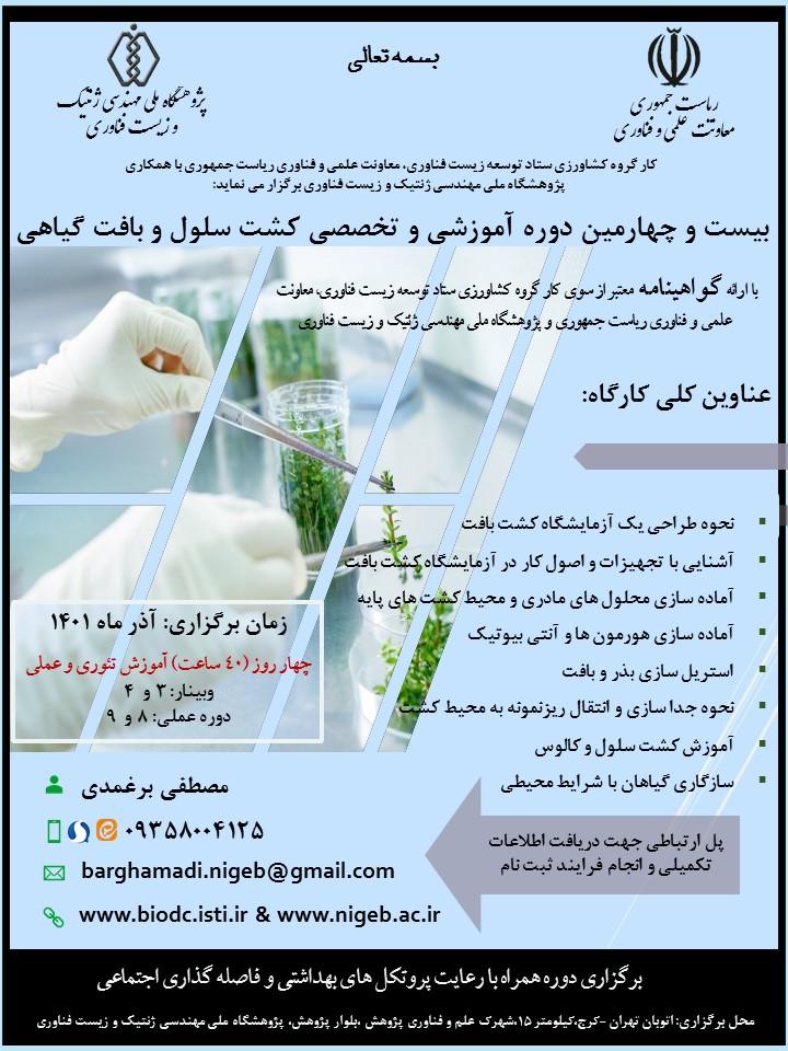 بیست و چهارمین دوره آموزشی تخصصی کشت سلول و بافت گیاهی