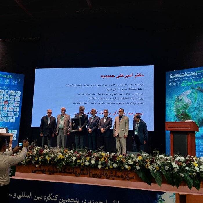 در سیزدهمین کنگره ملی و پنجمین کنگره بین المللی از خدمات دکتر امیرعلی حمیدیه دبیر پیشین ستاد توسعه سلول های بنیادی و فناوریهای سلولهای بنیادی معاونت علمی، فناوری و اقتصاد دانش بنیان ریاست جمهوری با حضور رییس انجمن زیستفناوری، رییس پژوهشگاه ملی مهندسی ژنتیک و زیستفناوری و برخی دانشمندان این حوزه به عنوان چهره تاثیر گذار بیوتکنولوژی کشور در سال ۱۴۰۲ تقدیر شد.امیرعلی حمیدیه (متولد ۱۳۵۱) دانش آموخته پزشکی از دانشگاه علوم پزشکی شهید بهشتی، رییس مرکز تحقیقات سلول و ژندرمانی کودکان، فوق تخصص خون و سرطان و پیوند سلول های بنیادی خونساز کودکان و استاد دانشگاه علوم پزشکی تهران است.وی از سال ۱۳۹۴ تا ۲۹ خرداد ۱۴۰۲ رییس ستاد توسعه علوم و فناوریهای سلول های بنیادی بود و بعد از آن احسان عارفیان به جای وی منصوب شد.