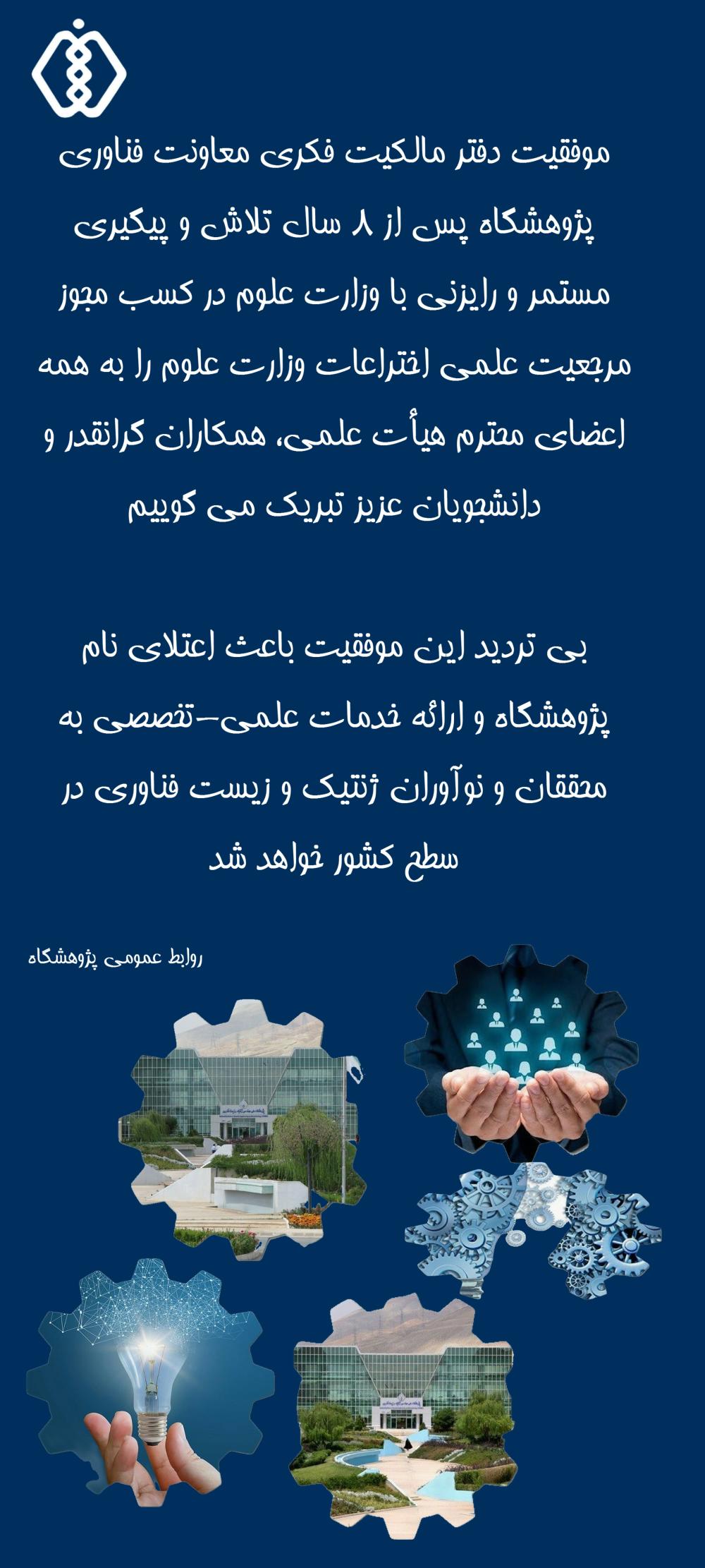 کسب مجوز مرجعيت علمي اختراعات وزارت علوم توسط دفتر مالکيت فکری پژوهشگاه