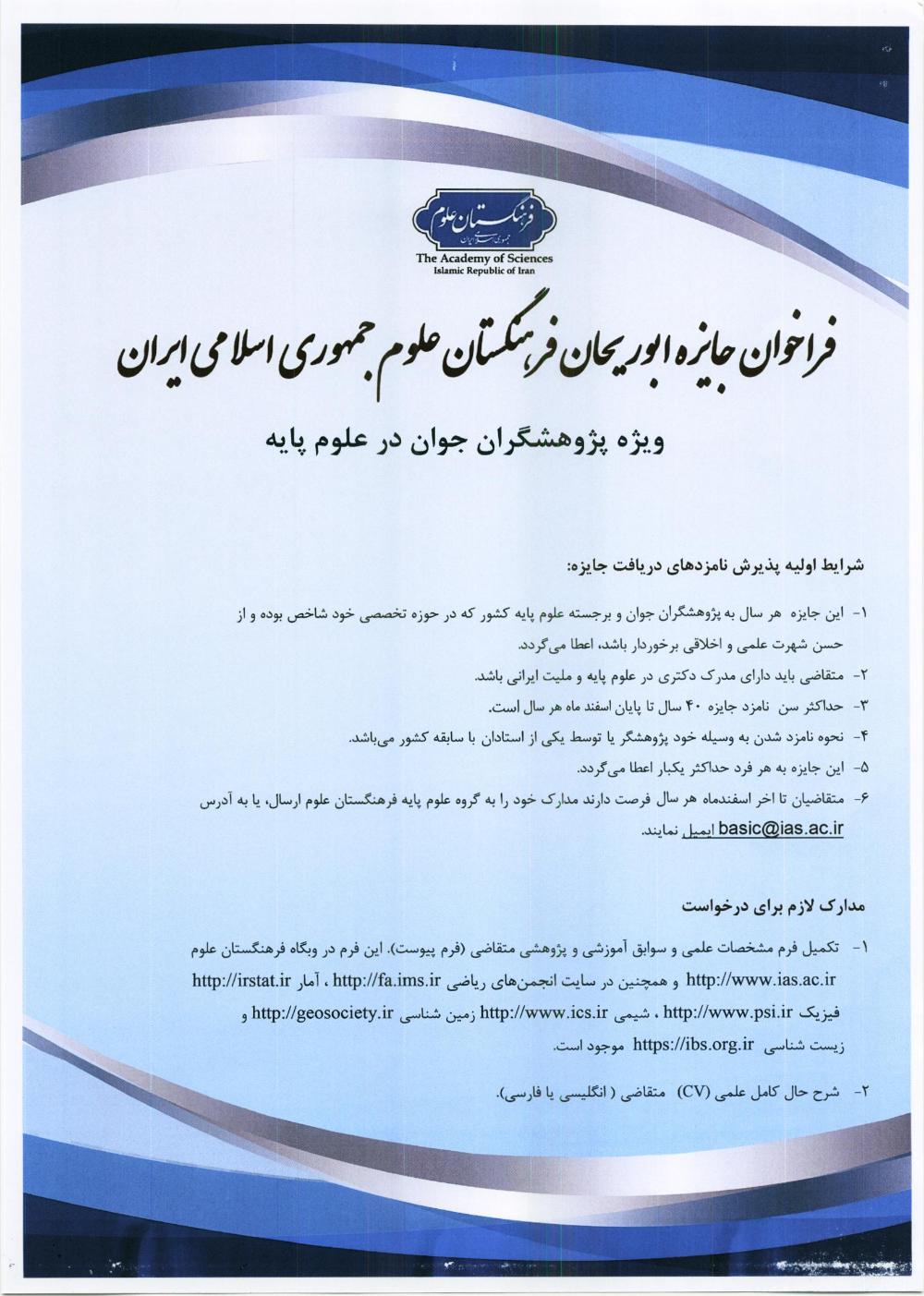 آیین نامه انتخاب پژوهشگر برجسته جوان (جایزه ابوریحان)
