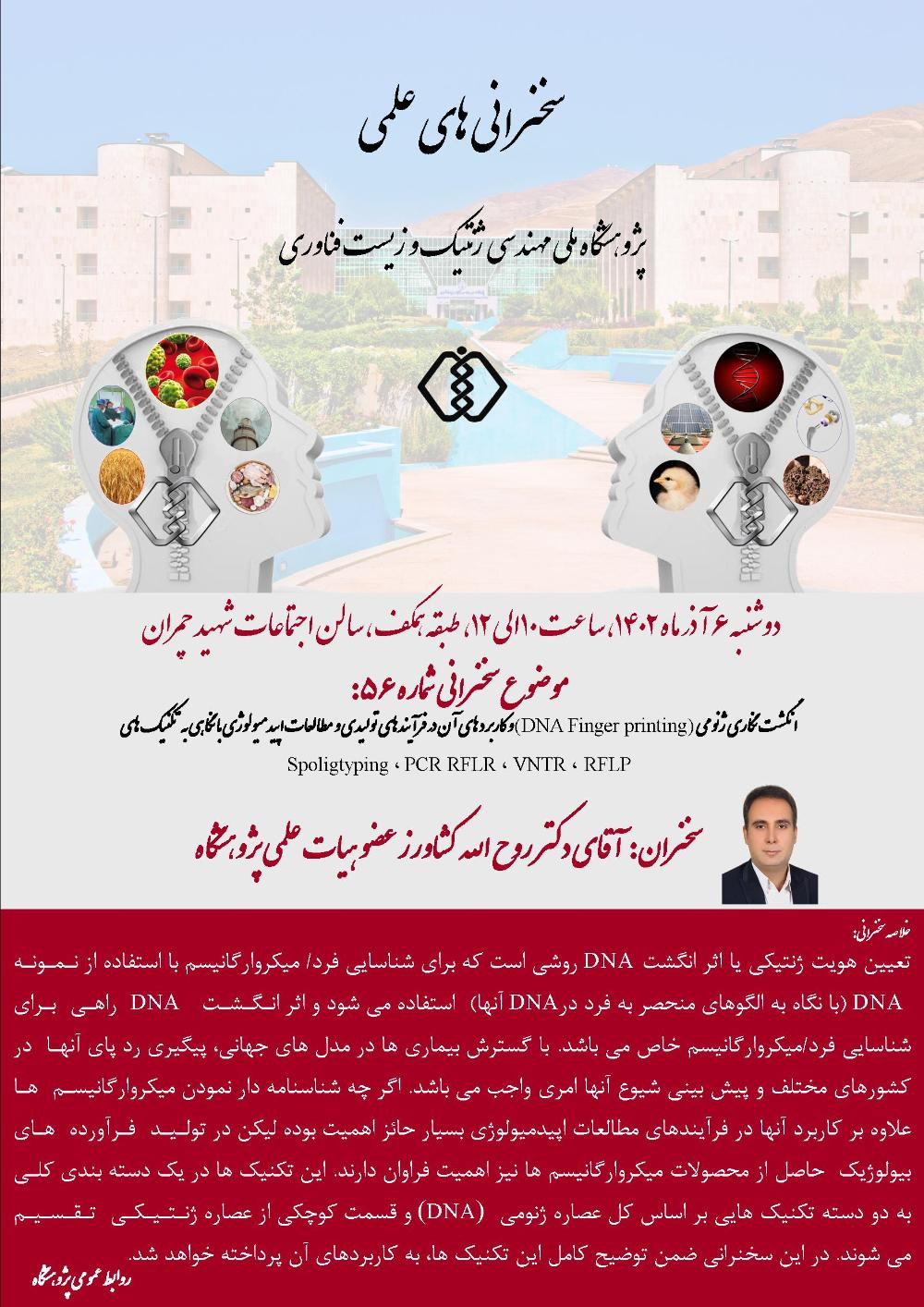 سخنرانی علمی با عنوان: انگشت نگاری ژنومی